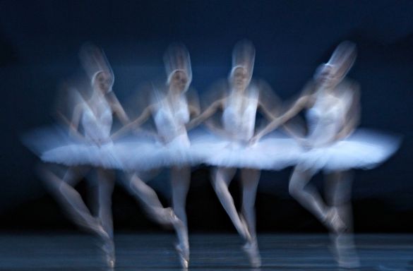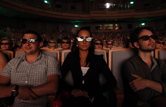 A screen showing Tchaikovsky’s ‘Swan Lake’ is seen through 3D glasses during the world’s first live 3D broadcast of a ballet performance, at the recently opened Mariinsky II Theatre in St. Petersburg June 6, 2013. [Source]
